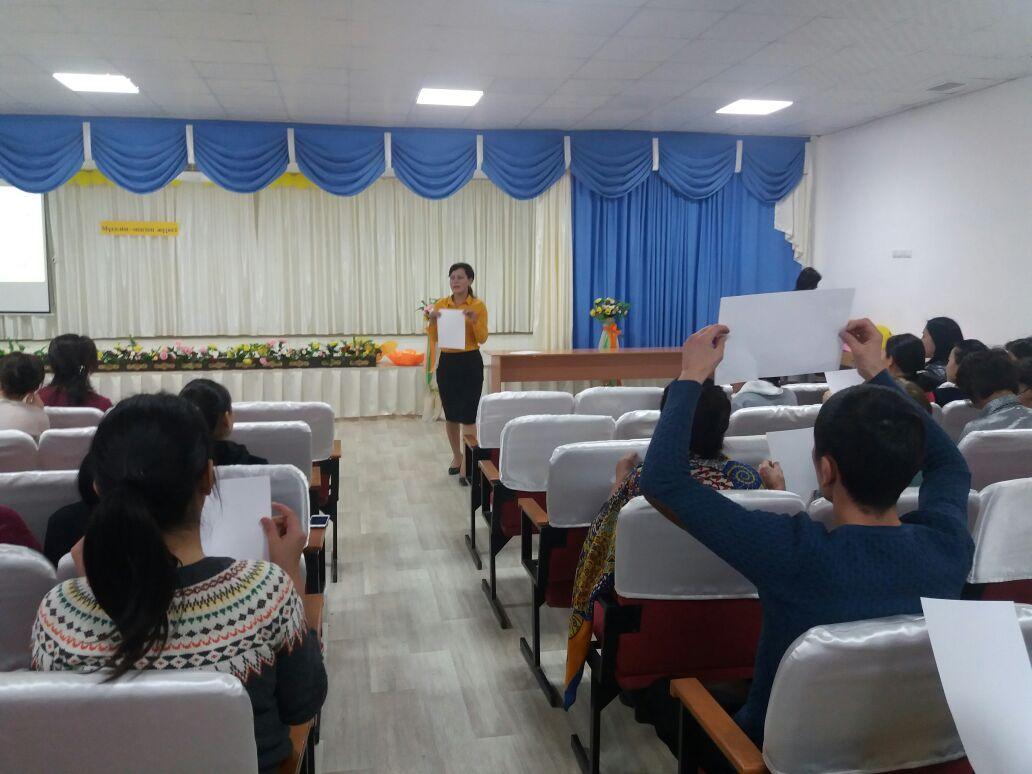 Мектеп психологы Ж.Ерназарованың педагогикалық ұжымның қарым-қатынасын жақсарту мақсатында «Мұғалім – мектеп жүрегі» тақырыбында өткен психологиялық тренинг өткізілді.