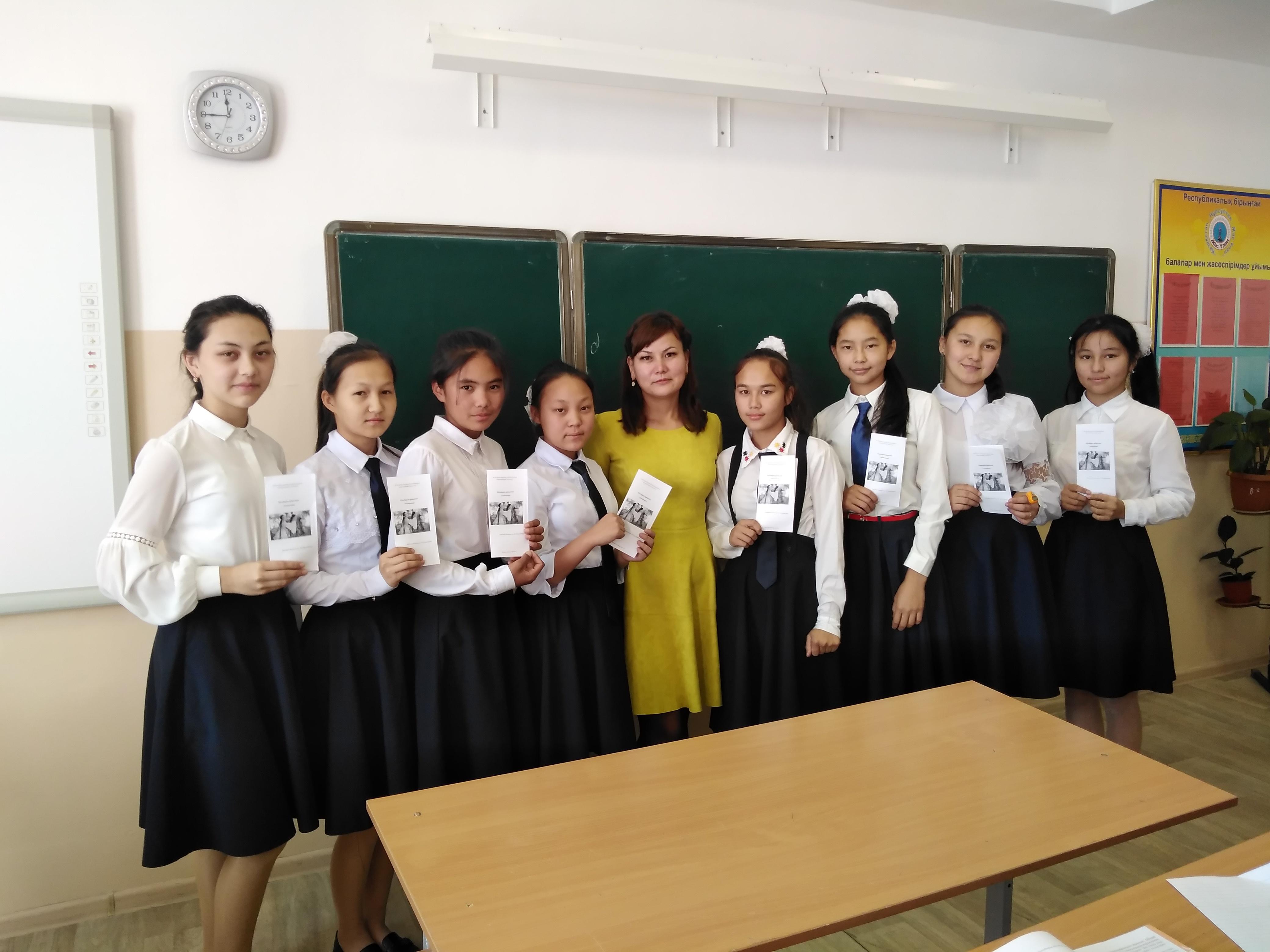 18 октябрь 2019 0 1 2 3 4 5 Психолог қыздармен жұмыс барысында Мектеп психологы Ж.Ерназарова қыздарға психологиялық кеңес беру мақсатында "Үлгілі үйдің қыздары" тақырыбында жадынама таратты.