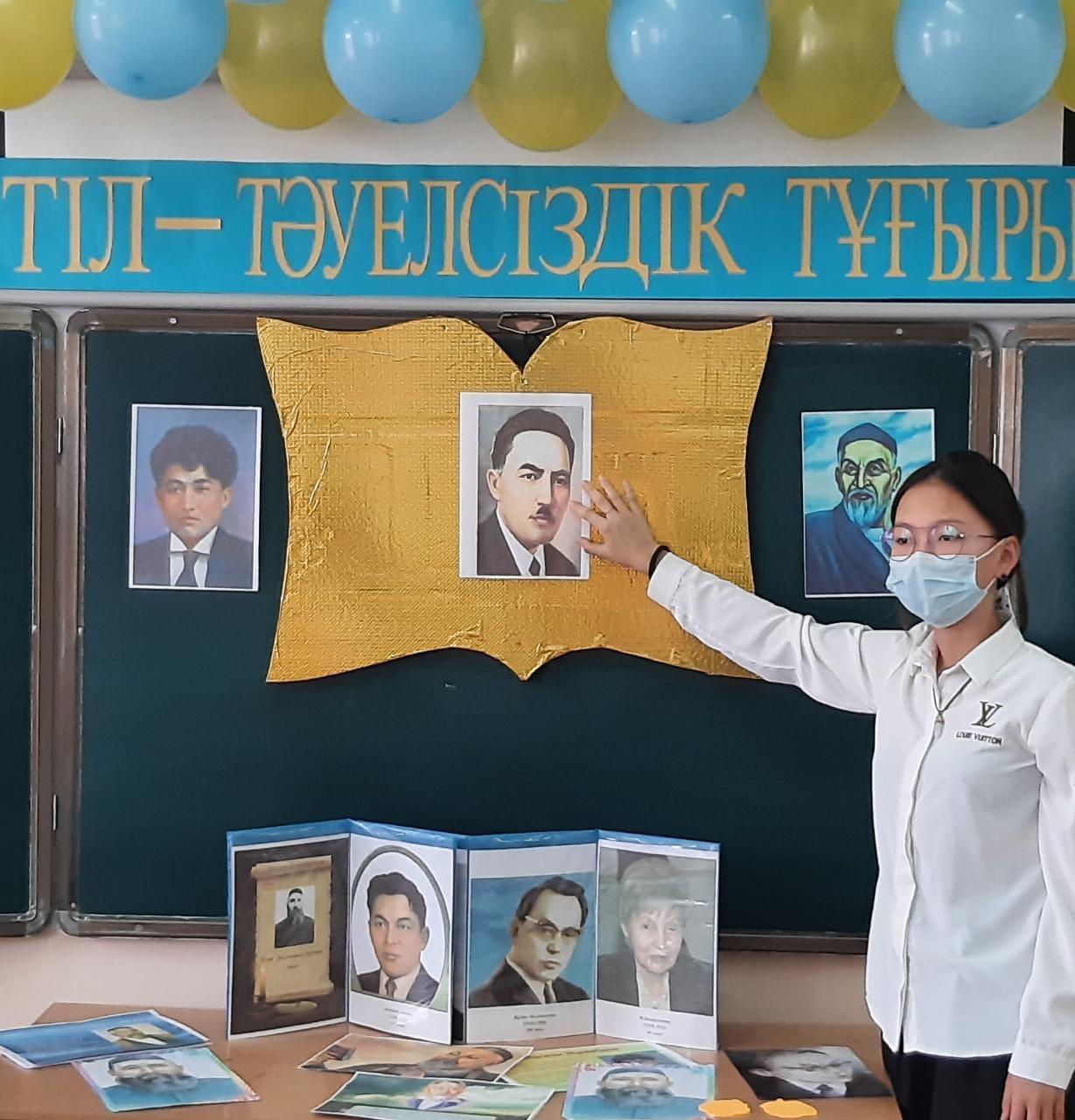 Тәуелсіздігіміздің тұғырына көтерілген жылдар ішінде елдің бірлігі артқандай. Елімізде ұлтымыздың ұлы тілімен қатар әлемдік тілдердің де құндылығы жоғары. Ұстаздар қауымының басты міндеті-шәкірттерін білім нәрімен сусындатып, болашақ ұрпаққа ұлағатты тәрбие беру. Осы мақсатта қазақ тілі пәнінің мұғалімдері Б.С.Молдаханов «Ана тілің-арың бұл» тақырыбында 8-сынып оқушыларымен сайыс, Ш.З.Ақмамбет «Тіл-тәуелсіздік тұғыры» тақырыбында 9-сыныптар арасында пікір-сайыс , М.С.Әбдіқұлова «Тіл ғұмыры-ұлт ғұмыры» тақырыбында кеш және «Ана тілім- ғажап тіл» тақырыбында 5-11 сыныптар арасында эссе байқауы ұйымдастырылып,белсенділік танытқан оқушылар марапатталды.