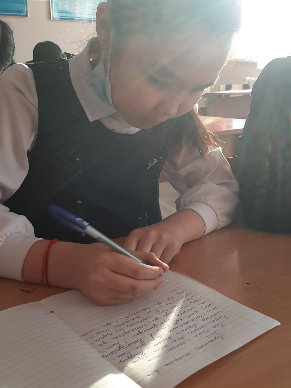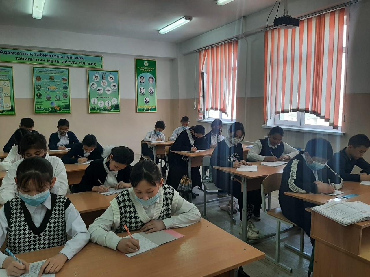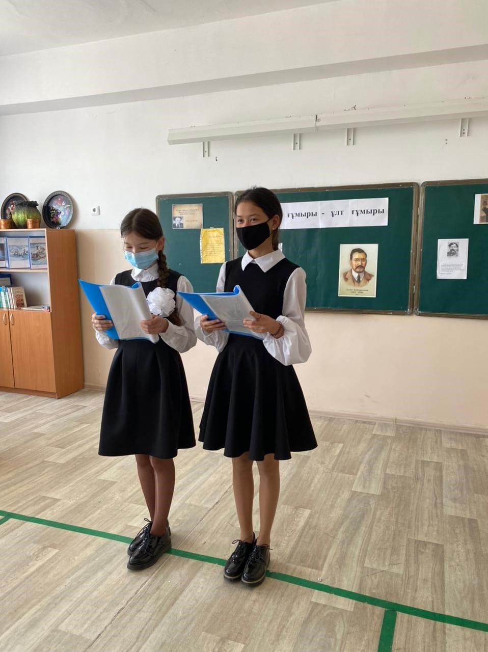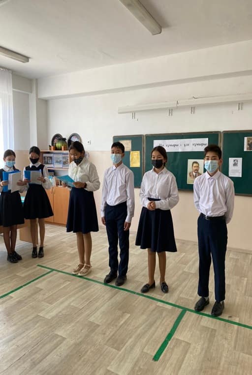 Мереке күні «Ана тілі туралы өлең білеміз бе?» айдарымен оқушылардан кез келген ақынның өлеңін жатқа оқып беруі сұралды. Қазақ тілі пәнінің мұғалімі Шыңғыс Мақсат М.Мақатаевтың «Үш бақытым» өлеңін оқып беріп, оқушылардың өлең оқуға деген қабілеттерін шабыттандыра түсті.Соның ішінде 5-сынып оқушысы Бекмұхамет Айару «Ана тілім» өлеңін оқып беріп тәуелсіз елдің мемлекеттік тілі мәртебелі де тұрақты болып, өрістеп дамуына үлес қосу-жас жеткіншектердің жауапкершілігінде болатын міндет екендігін айтты.