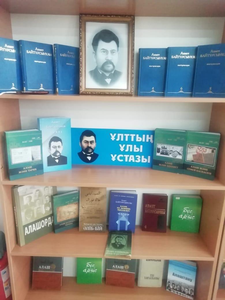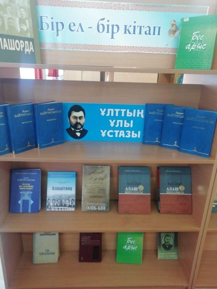 '' Бір ел-бір кітап ''акция бойынша,мектеп кітапханада '' '' ҰЛТЫМЫЗДЫҢ Ұстазы - Ахмет Байтұрсынұлы'' тарихи танымдық сағаты өтті Биыл, яғни 2022жылы Ахмет Байтұрсыновтың 150жыллығы ЮНЕСКОның атаулы күндер күнтізбесіне енгізіледі. Ахмет Байтұрсынов - қазақ ақыны, мемлекет қайраткері, әдебиет зерттеуші ғалым, ұстаз, аудармашы, ағартушы, публицист, ұлттық жазудың реформаторы, қазақ лингвистика мен әдебиеттанудан негізін қалаушы Алаш-Орда өкіметінің мүшесі.