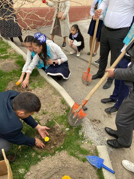 Мектебімізде "Табиғатты аялайық" акция аясында мектебіміздің маңайына оқушылар гүл егіп, өздеріңің тұратын үйлерінің бау-бақшаларындағы ағаштарды әктеп,көгалдандыру жұмыстарын жүргізуде.