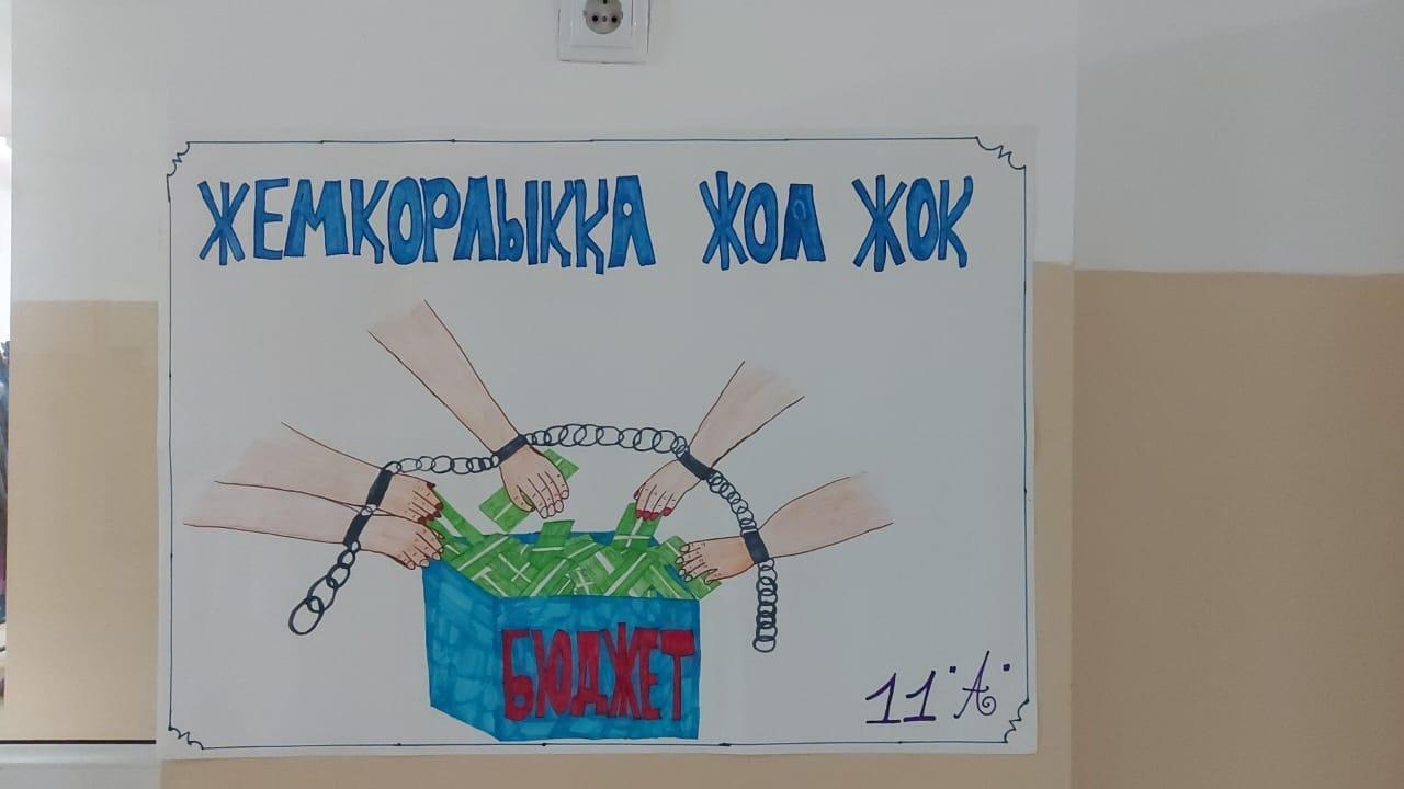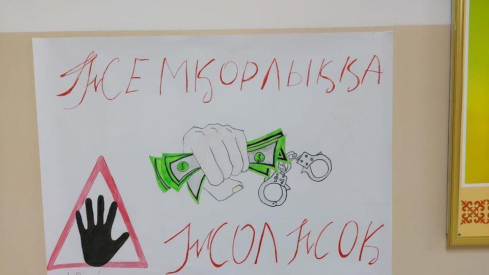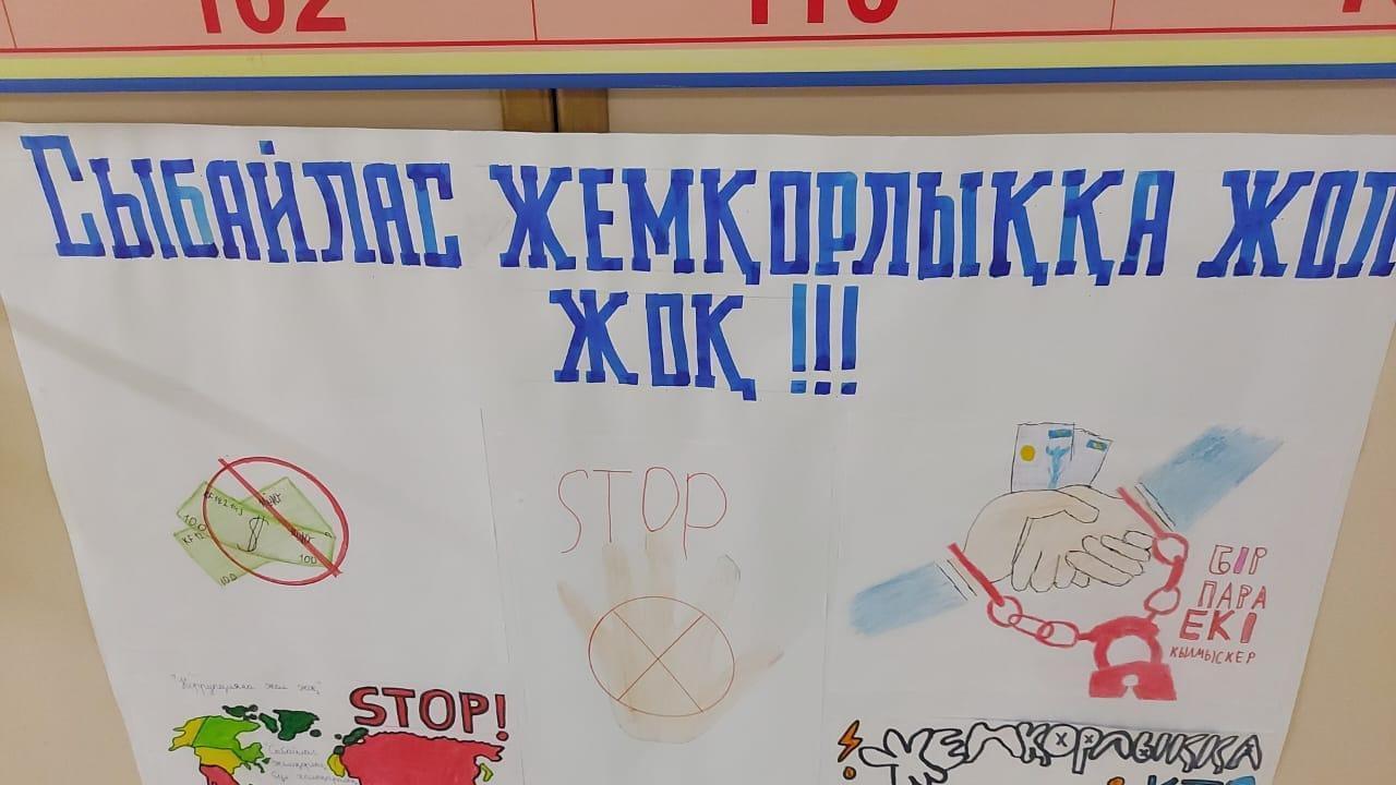 Сыбайлас жемқорлыққа қарсы мектебімізде сурет көрмесі өтті. Көрмеге 5-8 сынып оқушылары қатысты. Көрменің мақсаты ,өскелең жас ұрпаққа сыбайлас жемқорлыққа қарсы мәдениетті қалыптастыру, оқушылардың суреттері арқылы олардың ойларын, көзқарастарын білу.
