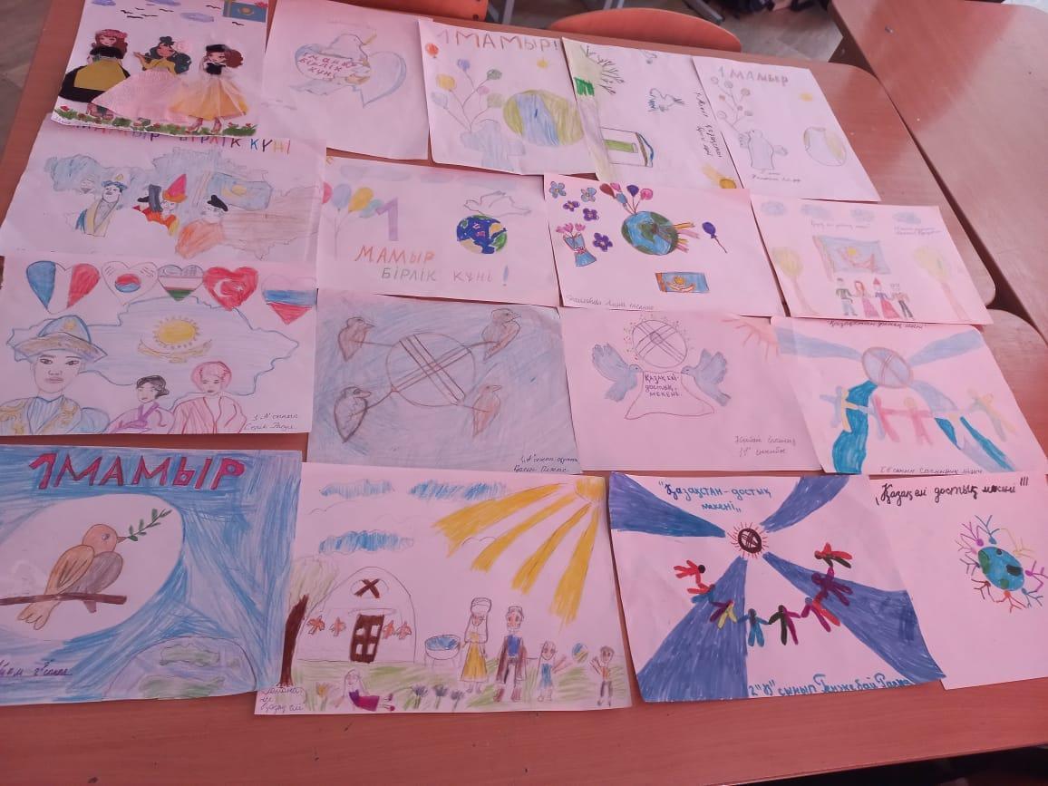 1-мамыр - Қазақстан халықтарының бірлігі күніне орай 1-2 сыныптар арасында “Қазақстан - достық мекені” атты сурет байқауы өтті.