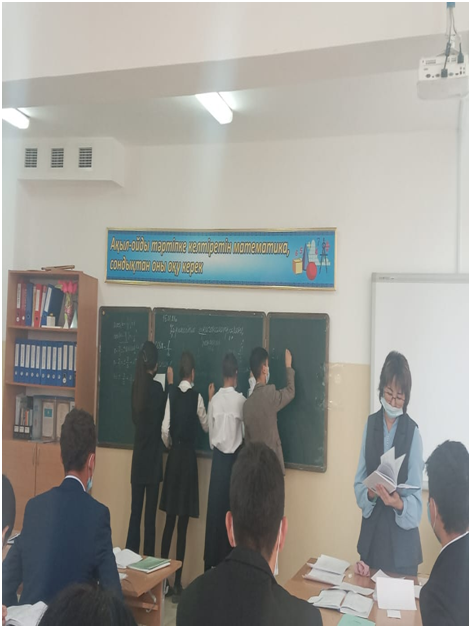 Мұғалім сынып оқушыларын топқа бөлу арқылы жаңа тақырыпты қызықты өте білді. Оқушылар сабаққа белсене қатысып өз білімдерін көрсете білді. Сабақта интербелсенді тақта пайланылды. Топтық, жеке жұмыстар орындалды.