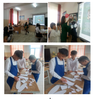 Мақсаты: Оқушылардың шығармашылық ойлауын, дүниетанымын қалыптастыра отырып,  өз бетінше ізденуін,күнделікті өмірде алған білімдерін тиімді пайдалану ,өнерлі білікті, мәдениетті және денсаулығы мықты азамат етіп тәрбиелеу. Барлық тәрбиелік істе әрбір баланы жеке тұлға деп танып қоғам өміріне белсене қатынасатын жан-жақты дамыған адамды қалыптастыру.  13.03 күні апталықтың ашылуы болып өтті.    14.03 күні көркем еңбек пәнінен Тлеужанов Талғат 7 «Б» сыныбында «Полиграфия өнерімен  танысу. Көркемдеп күйдіру техникасы» атты ашық сабақ өтті. Сабақта меңгерілетін оқу мақсаты, 7.1.2.1. Тарихи және мәдени шығу тегі әртүрлі өнер, қолөнер мен дизайн туындыларының ерекшеліктері өз бетінше зерделеу және сипаттау. Сабақ барысында топтық жұмыс орындалды. Оқушылар ағаш бетіне күйдіру арқылы суреттер салды, көшірме қағаздар қолданылды. «Еркін микрафон» әдісі  арқылы бекіту сұрақтарға жауап берді. Берілген суреттерге сабақтан алған әсерлерін жазу арқылы кері байланыс жасады.   Мұхатаева Жағыл музыка пәнінен 5 «А» сыныбына «Өз елім» атты ашық сабақ өткізді.Оқу мақсаты, 5.1.1.1 музыканың түрін, стилі мен жанрын, музыкалық көркемдеуші құралдарды анықтау, тыңдалған шығарманы талдау; Сабақ барысында бірнеше әдіс тәсілдер қолданылды. Оқушылар дәптермен жұмыс жүргізді , кроссвордтар шешті.5.1.3.1 түрлі әндерді орындау барысында музыканың көңіл күйі мен көркем бейнесін жеткізу;   Сабақ барысында әр түрлі әдіс тәсілдер қолданылды.  Дулат Айбын көркем еңбек пәнінен 15.03 күні 6 «Б» сыныбында «Көлік құралын орындау. Үлгінің жеке бөліктерін дайындау, үлгіні құрастыру, безендіру» ашық сабақ өткізді. Оқу мақсаты, 6.2.3.1 орындалған өлшем мен белгілеу негізінде бұйым дайындау үшін материалдарды электрлік қол құралдарымен өңдеу; 6.2.3.2 ажырайтын және ажырамайтын біріктіру әдістерін қолданып, бірнеше бөліктерден тұратын бұйым жасау; Оқушылар эскиз бойынша көлік үлгілерін құрастырды. Омаргазина Назерке көркем еңбек пәнінен 6 «Г» сыныбына «Тоқыма  материалдарынан бұйым дайындау (авторлық қуыршақ, дамытатын ойыншықтар)» ашық сабақ өткізді. Сабақта қол жеткізілетін оқу мақсаты:    6.1.5.1 - Өзінің тәжірибесі мен біліміне сүйеніп, композицияның негізгі заңдылықтарын сақтай отырып, әртүрлі нысандардың дизайны бойынша тапсырмалар орындау. Оқушылар «Тілек гүлдері» әдісі арқылы бір бірлеріне жылы тілектерін жолдады және гүлдердің түсіне қарай топқа бөлініп отырды. Өтілген сабақтарға шолу жасау мақсатында  ZipGrade платформасында  оқушыларға  тест ұсынды. «Ойыншықтар» әдісі бойынша  оқушылар   тақырыпты болжады. ЫҚБ жүргізіліп отырды. Оқушылардың болжамына сүйене  сабақ мақсатымен  таныстырды. Пәнаралық байланыс пен құндылыққа  ақпарат беріледі. Жеке, жұптық, топтық жұмыстар орындалды. «Сиқырлы ине» әдісі арқылы бүгінгі сабақтан алған білімі бойынша  сұрақ қою арқылы сабақты бекітті. «Түсті жіптер» әдісі арқылы кері байланыс жасалды. Оқушылар түсті жіптерге бүгінгі тақырып бойынша  алған білімдерін саралап жазып қалташаларға салады.15-17 наурыз аралығында «Қазақтың қолөнері- асыл қазына» атты   қолөнер  өткізілді.  Көрмеге оқушылар қолынан шыққан бұйымдар қойылды.  17 наурыз күні апталықтың жабылуына орай «Наурыз-думан, мереке» атты  концерттік бағдарлама өтті. Концертке 5 және 9 сынып оқушылары  қатысты.