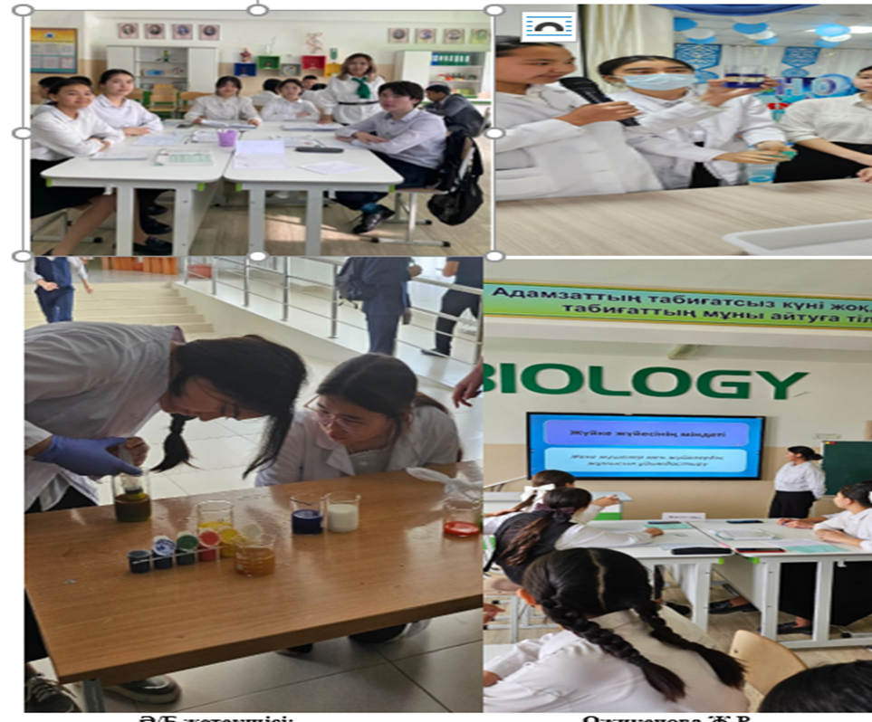 Ожикенов. Ж.  және Махашова Г. «Биология әлеміне саяхат» сайыс сабақ өткізілді.Бұл сайыс 7-сыныптар арасында жарыс түрінде өтті. Биологиялық қызықты сұрақтар,сергіту ойындары,Қызыл кітапқа енген өсімдіктер туралы айтылды.Ситуацялық сұрақтар өмірмен байланыстырып қойылды. Оқушылар белсенді қатысып,сабаққа деген қызығушылықтары артты.Сұраққа жауап беру арқылы өздерінің жинаған купондарын санау арқылы ұтыс ойыны ойнатылды.Көп ұтыс ұтқан  топ аукционға түсіп сыйлықтармен марапатталды.